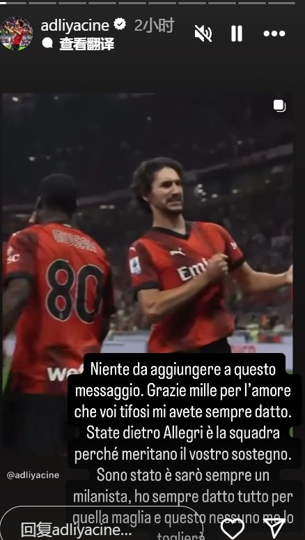 Adley đã viết: "Cảm ơn bạn rất nhiều vì những người hâm mộ tình yêu của bạn đã luôn dành cho tôi. Tôi muốn nói với bạn: Hỗ trợ Allegri và nhóm vì họ xứng đáng với sự hỗ trợ của bạn."